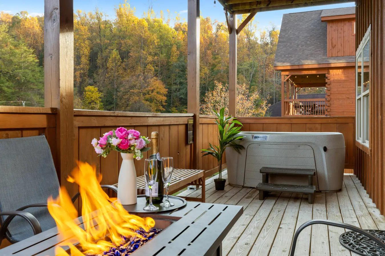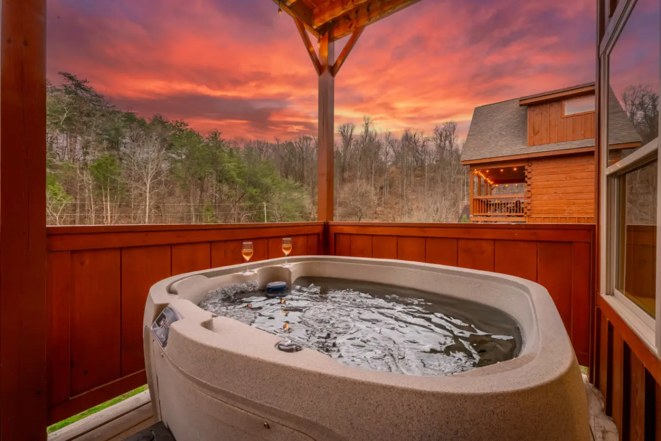 Sip, soak, and savor the view from your private hot tub.