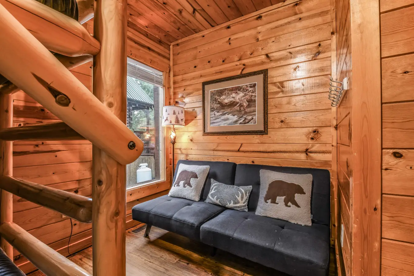 Catch golden hour over the Smokies in this cabin—sunsets hit different from the mountain-view deck.