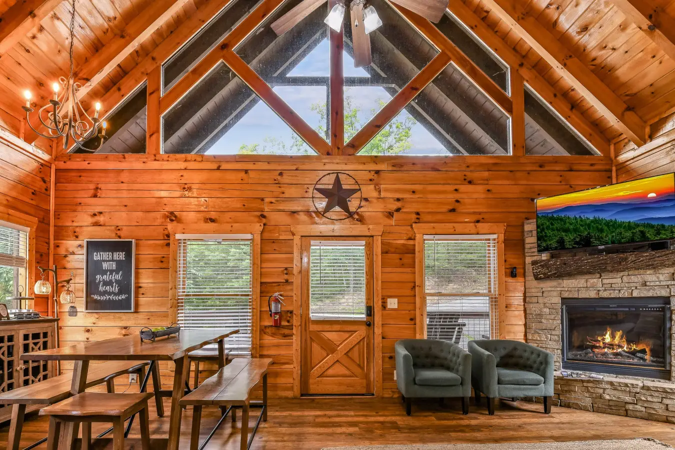 In this cabin, the Smoky Mountains steal the show—framed by breathtaking views and timeless lodge design.