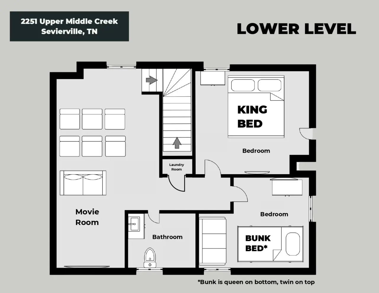 Bedroom 4: Bunk beds made for fun and comfort — perfect for kids or extra guests.