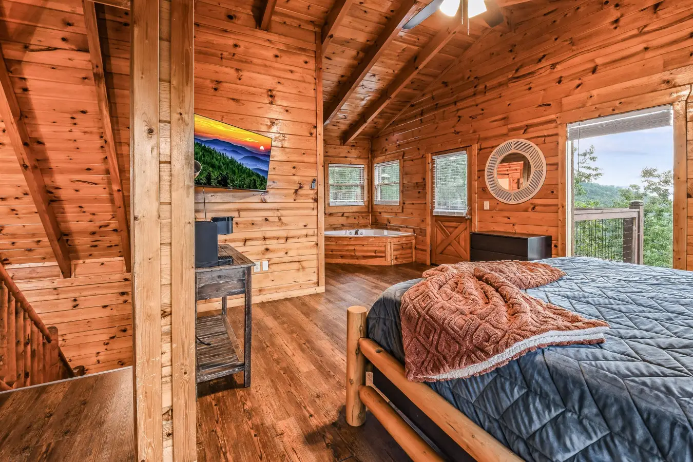 Bedroom 1: Wake up to floor-to-ceiling Smoky Mountain scenery.