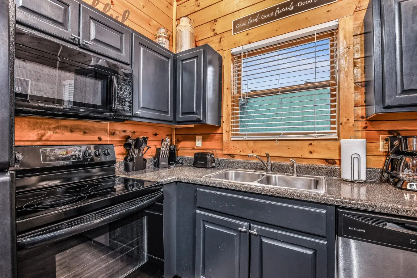 Located in the gated Summit View community near Pigeon Forge, the property offers scenic views and a quiet atmosphere. Inside, the fully equipped kitchen and dining area make it easy to prepare and enjoy meals.