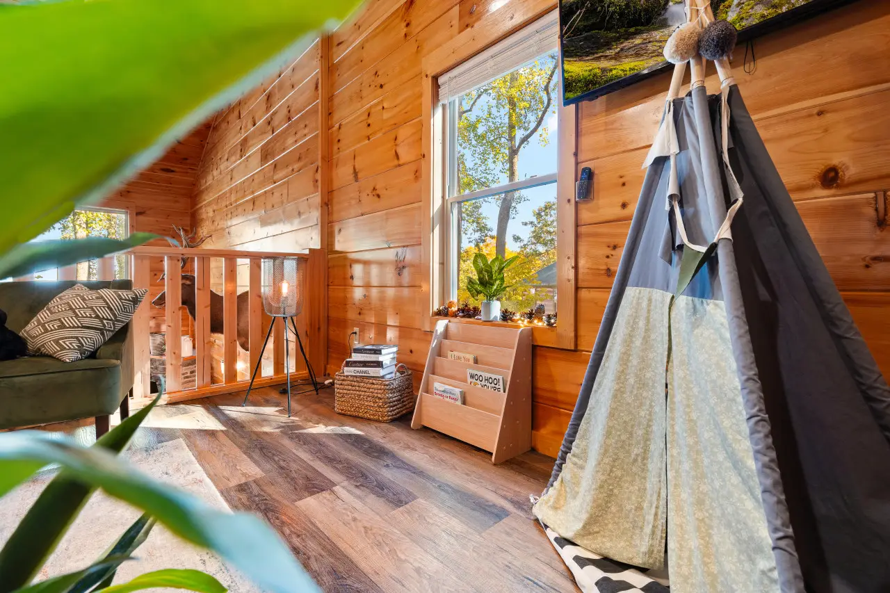 A corner for family bonding and quiet moments, all wrapped in the warmth of the cabin.