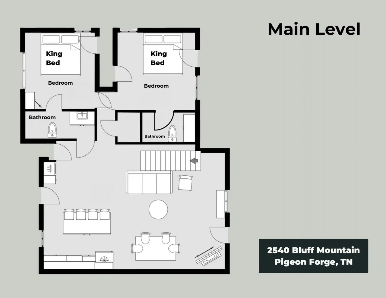 Community Deck: Please note that all Bluff Mountain properties share access to a community deck. This space is not included with your rental for private events like dinners, receptions, or celebrations, but it may be reserved separately upon request for a fee. Unauthorized use of the shared deck for gatherings is strictly prohibited and will result in removal from the property without refund and charge of a $500 fee.