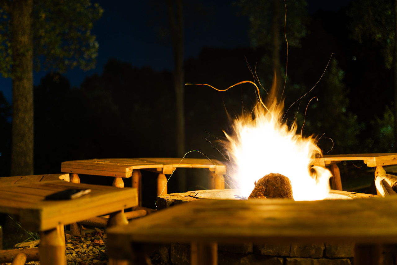 Let the flames and quiet skies set the mood.