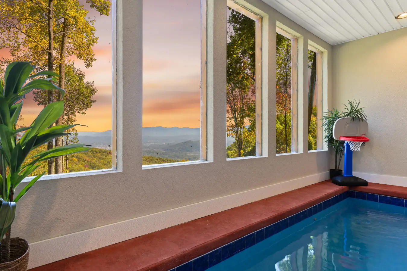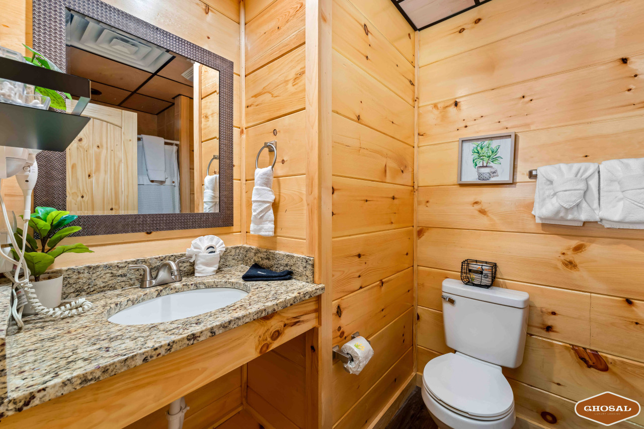 Heated Indoor Pool: Our cabin features a private indoor pool that is heated for your enjoyment. The pool’s temperature is carefully maintained between 82 and 84 degrees Fahrenheit, ensuring a comfortable swimming experience throughout your stay.