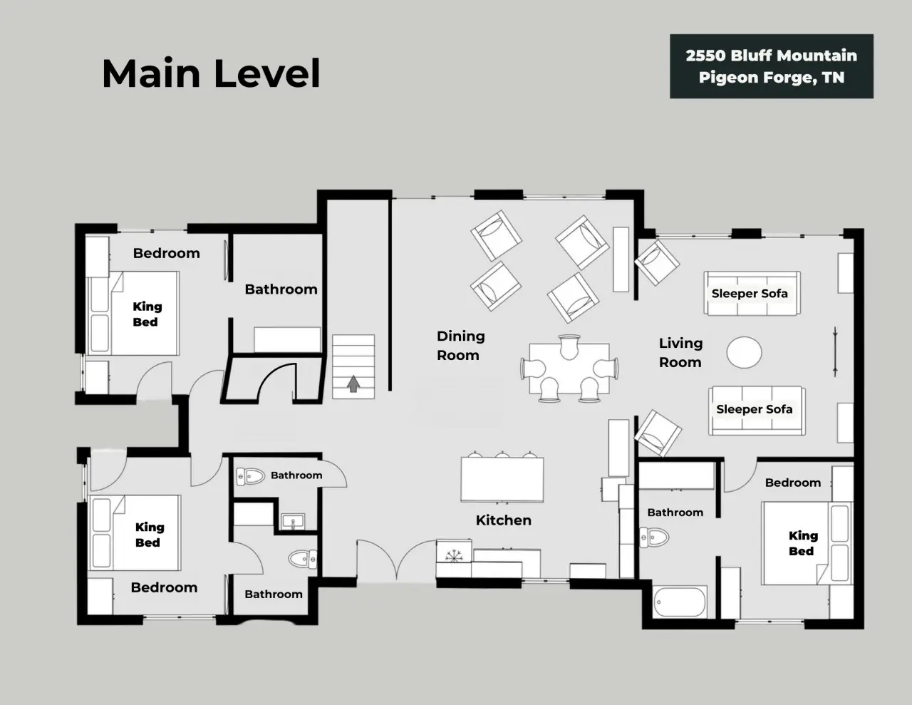 Community Deck: Please note that all Bluff Mountain properties share access to a community deck. This space is not included with your rental for private events like dinners, receptions, or celebrations, but it may be reserved separately upon request for a fee. Unauthorized use of the shared deck for gatherings is strictly prohibited and will result in removal from the property without refund and charge of a $500 fee.