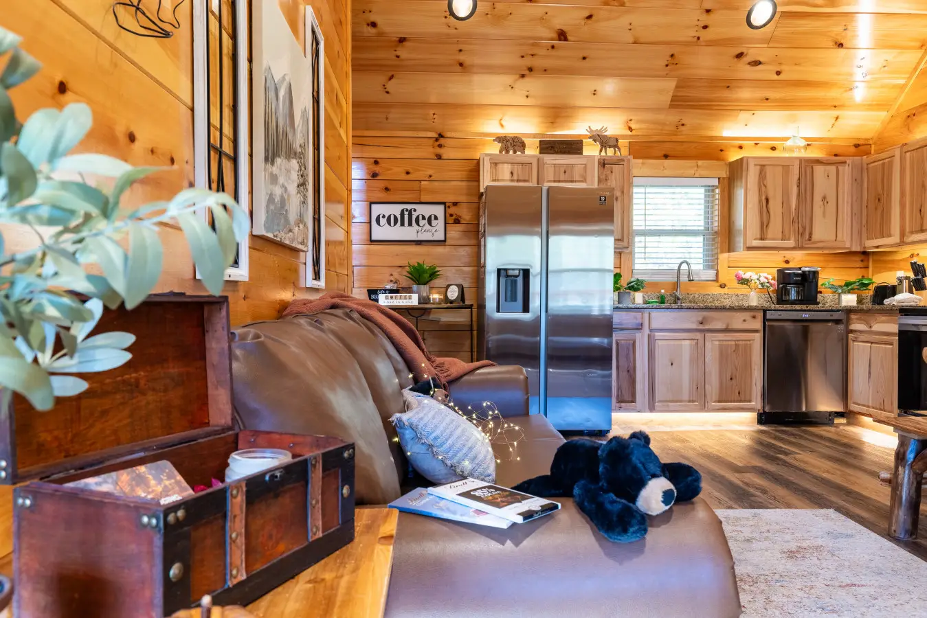 – Please take the trash out to the bear-proof bins outside. If you have any extra trash, kindly place it inside the cabin near the front door, and our cleaning team will remove it after your checkout.