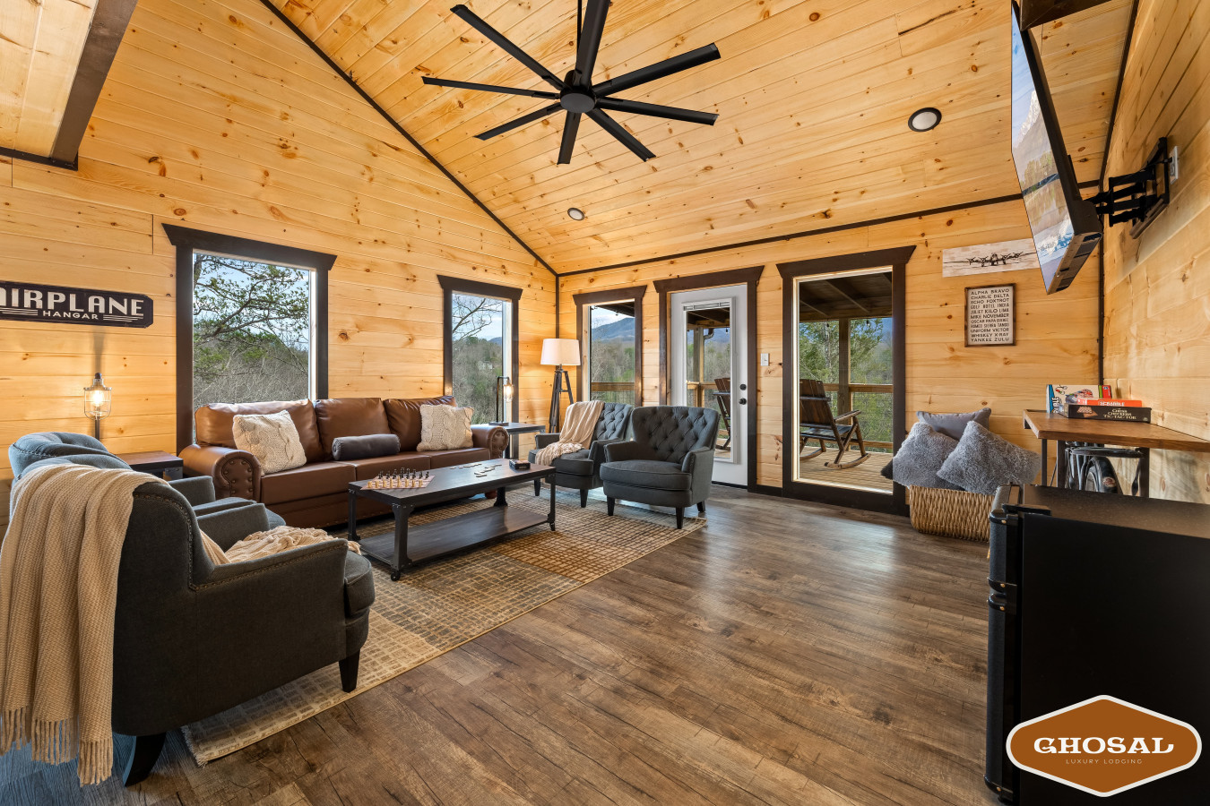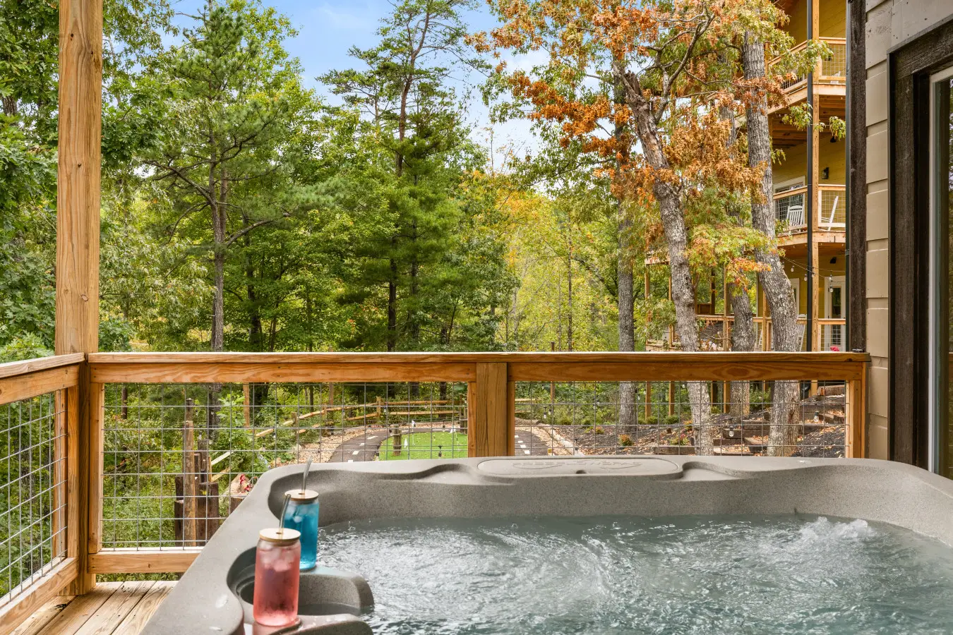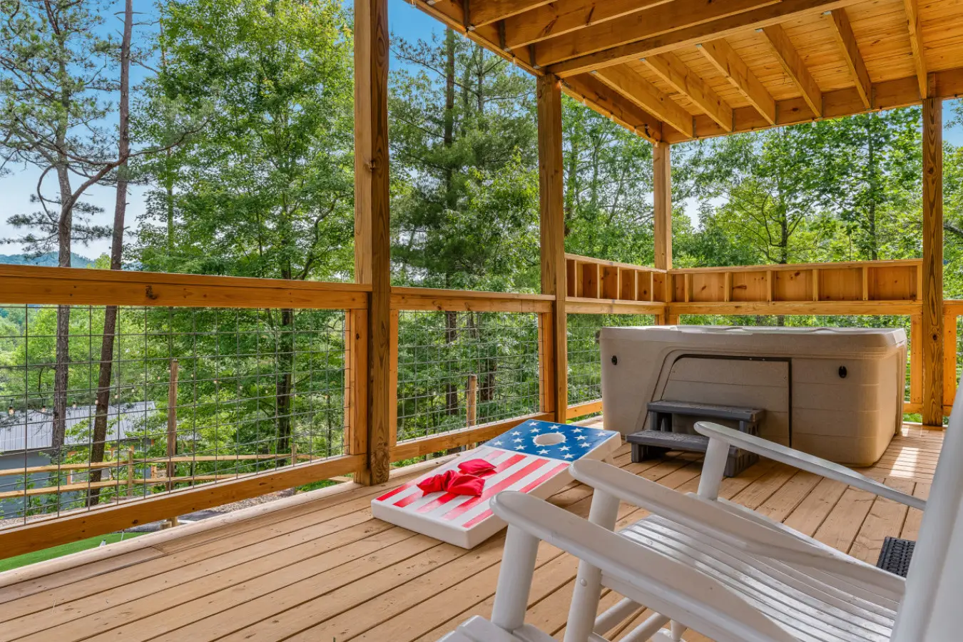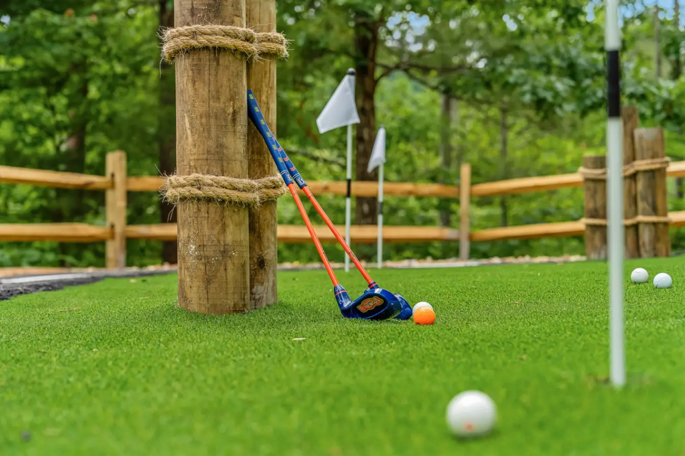 Outside, the resort continues to impress with its extensive grounds designed for fun and relaxation. Guests can enjoy a private mini-golf course, a fleet of children’s bikes and mini cars with a dedicated circuit, and a mini climbing area for young adventurers. The expansive decks and outdoor seating areas provide breathtaking views of the Smoky Mountains, making them the perfect backdrop for unforgettable memories.