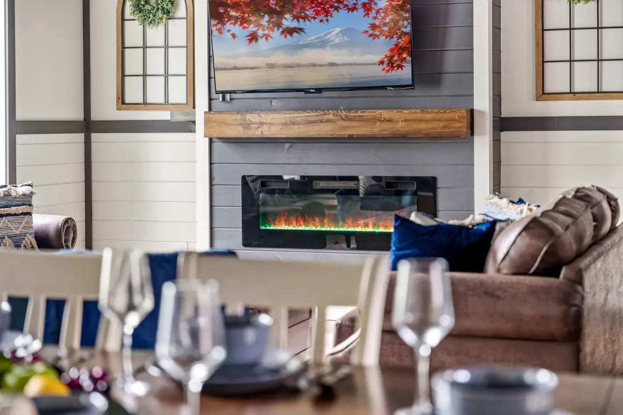 Relax with your favorite show, good company, and the comfort of a warm fire.