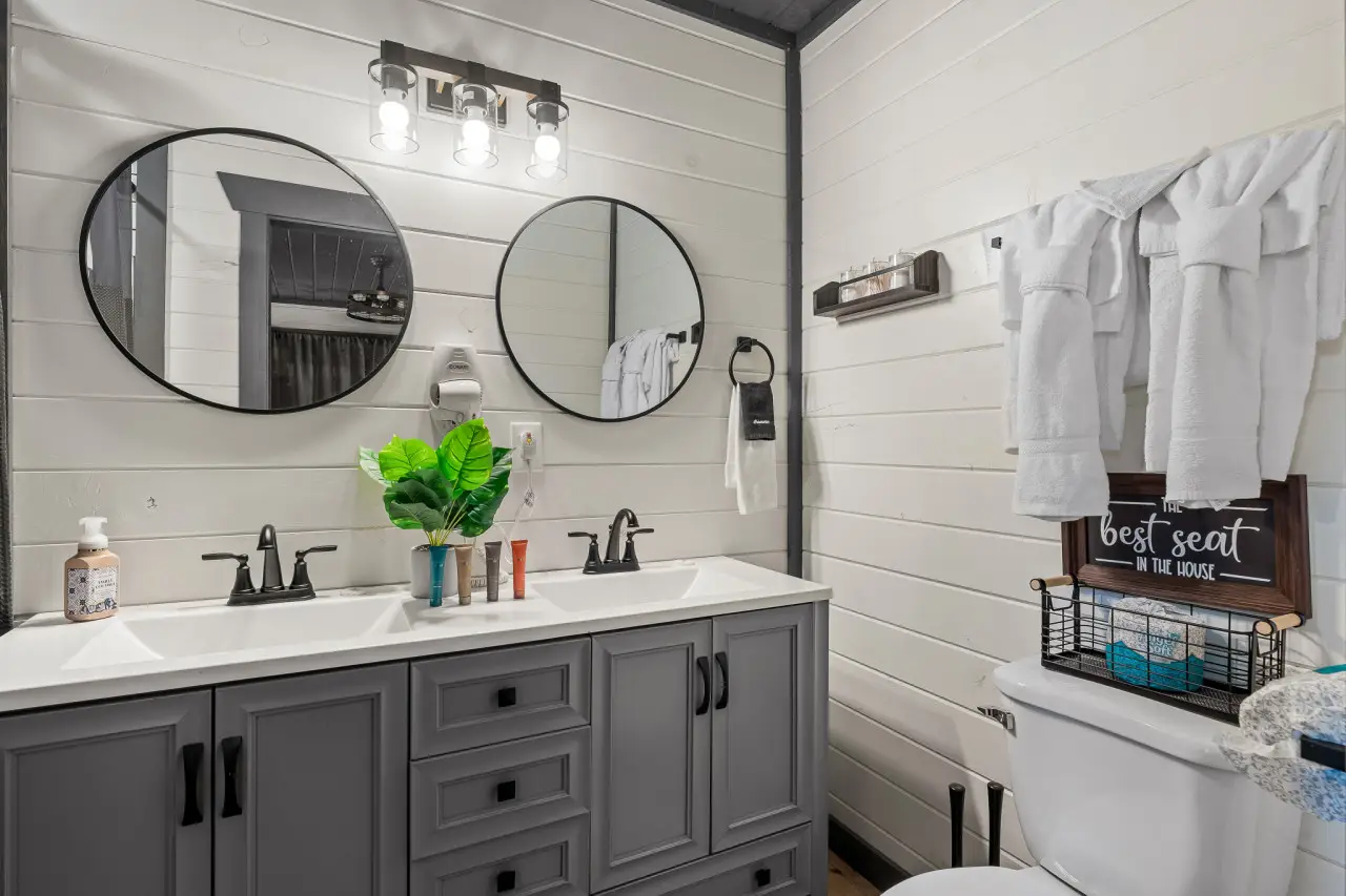 Bathroom 1: Bright, beautiful, and designed for a stress-free morning.