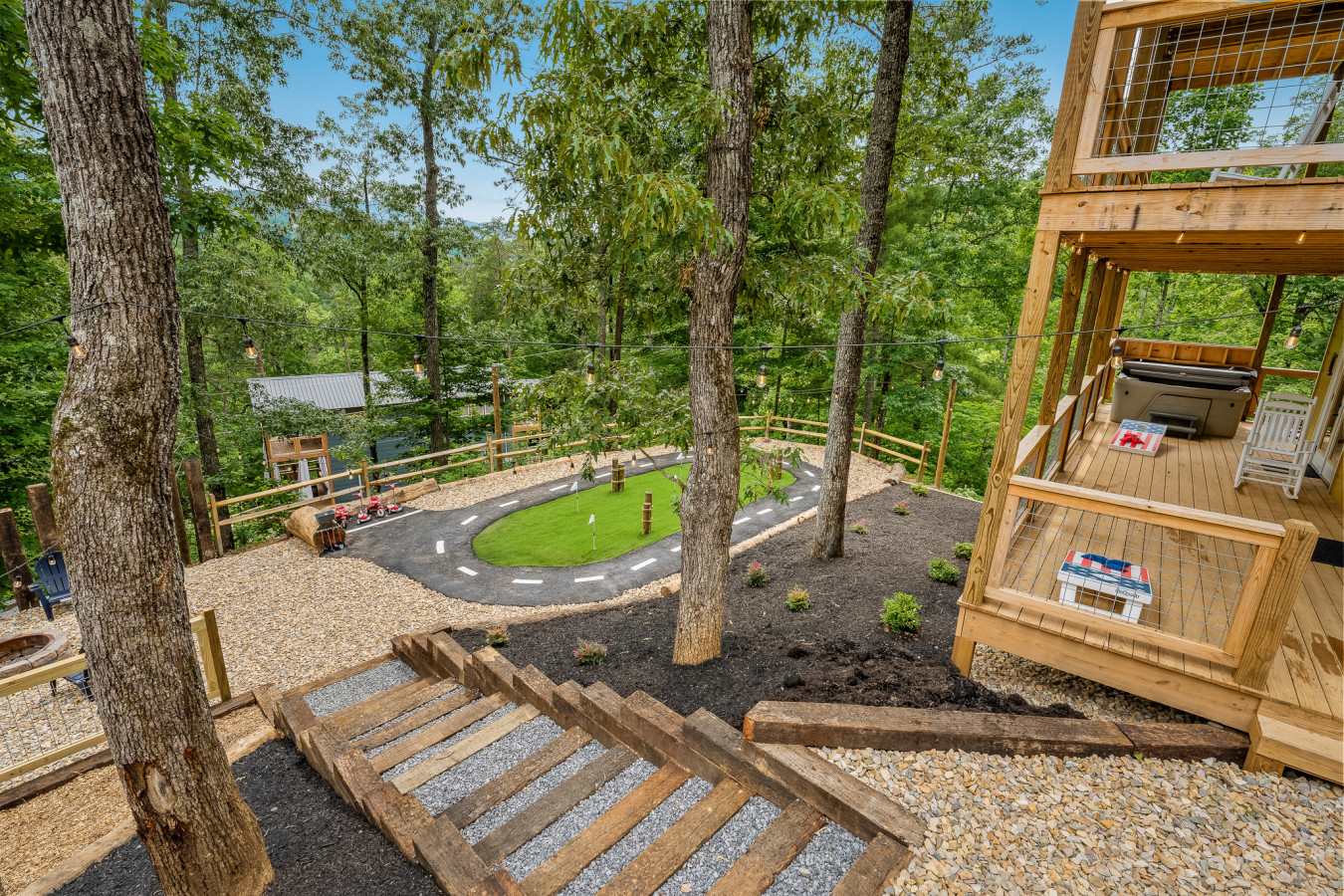 Mini golf, car rides, children's games - this cabin has everything to entertain young and old alike.