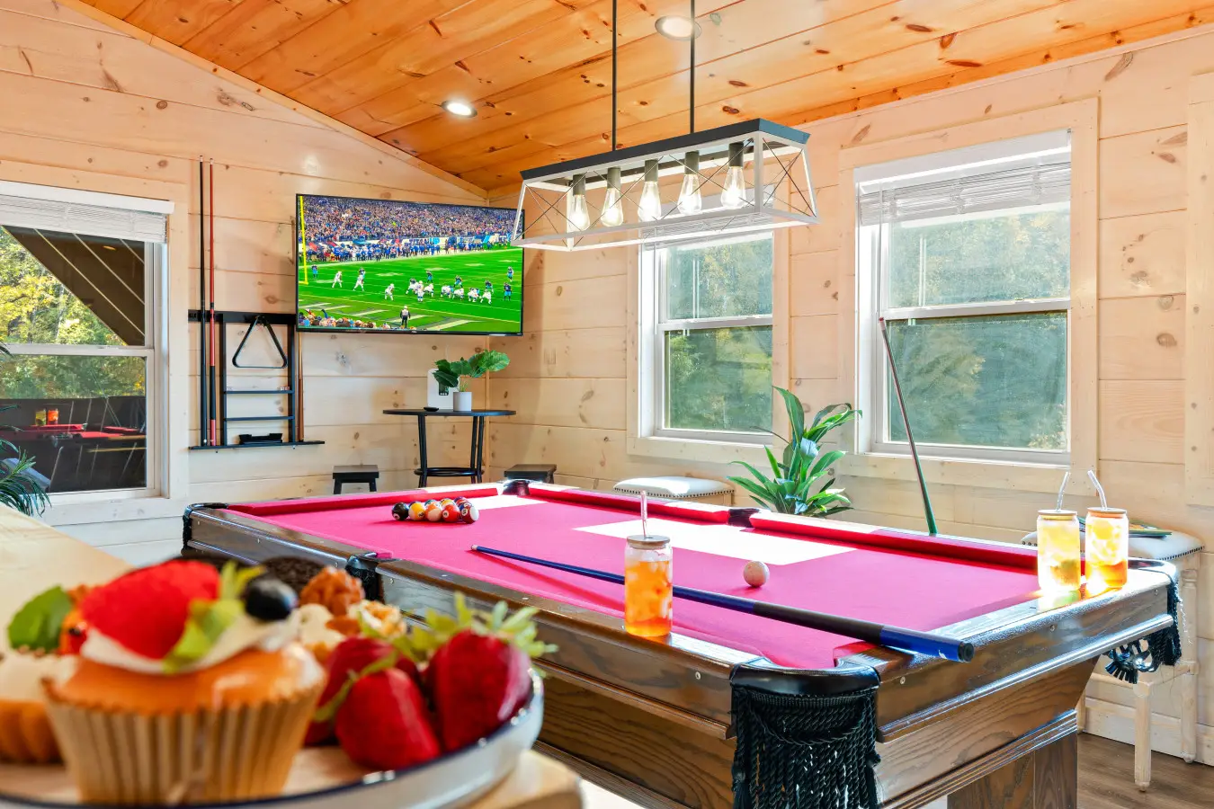 Heated Indoor Pool: Our cabin features a private indoor plunge pool that is heated for your enjoyment. The pool’s temperature is carefully maintained between 82 and 84 degrees Fahrenheit, ensuring a comfortable swimming experience throughout your stay.