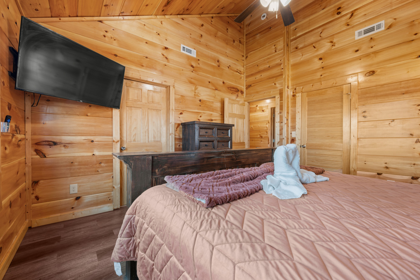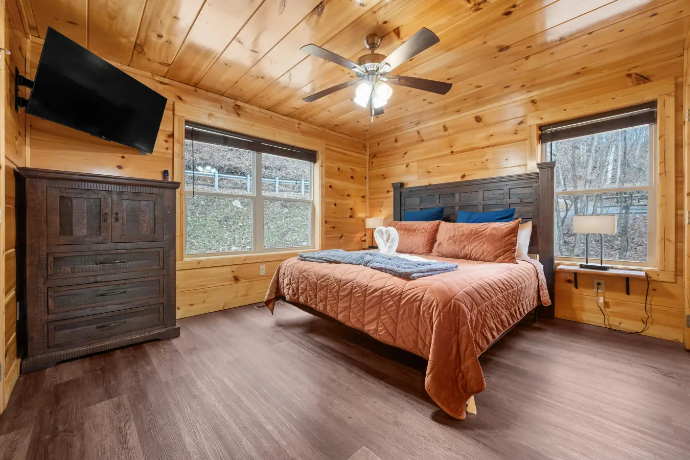 Please note that all Bluff Mountain properties share access to a community deck. This space is not included with your rental for private events like dinners, receptions, or celebrations, but it may be reserved separately upon request for a fee. Unauthorized use of the shared deck for gatherings is strictly prohibited and will result in removal from the property without refund and charge of a $500 fee.