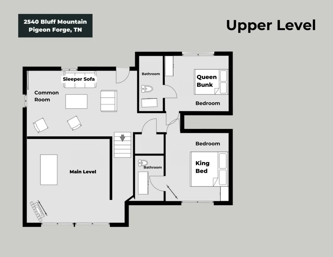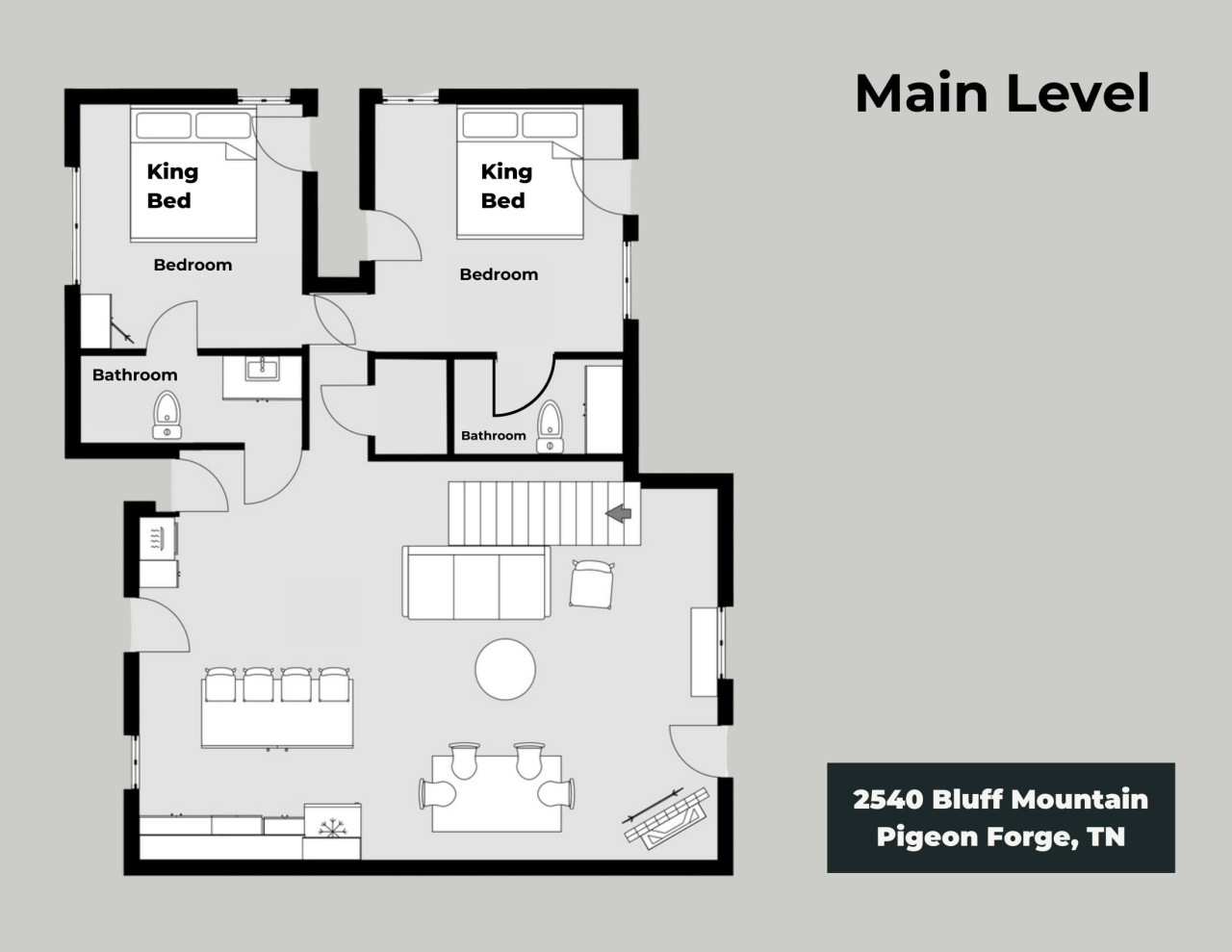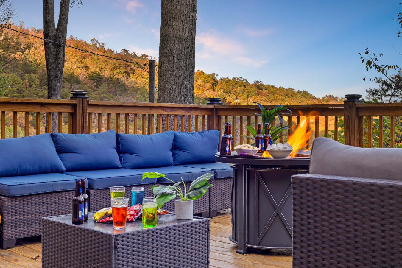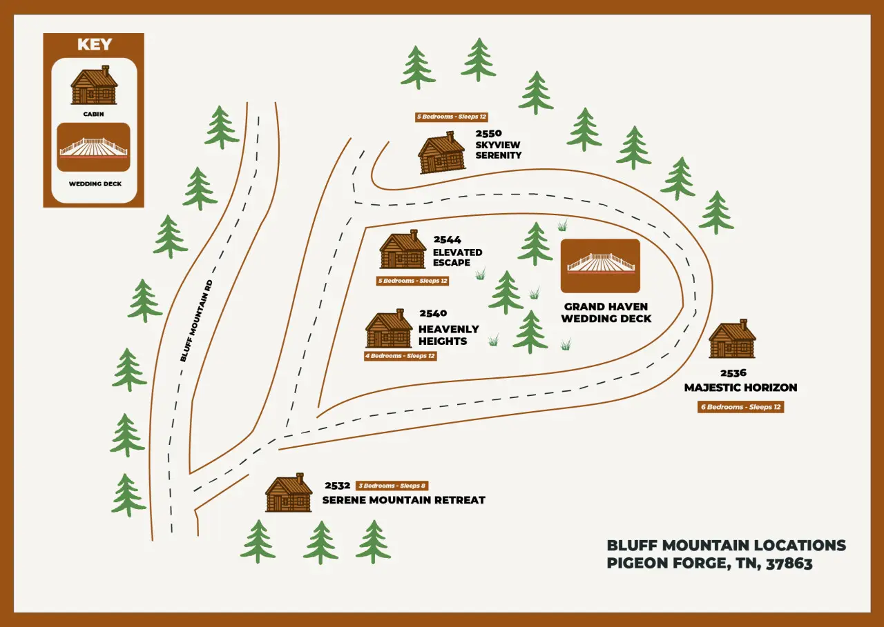 Please note that all Bluff Mountain properties share access to a community deck. This space is not included with your rental for private events like dinners, receptions, or celebrations, but it may be reserved separately upon request for a fee. Unauthorized use of the shared deck for gatherings is strictly prohibited and will result in removal from the property without refund and charge of a $500 fee.