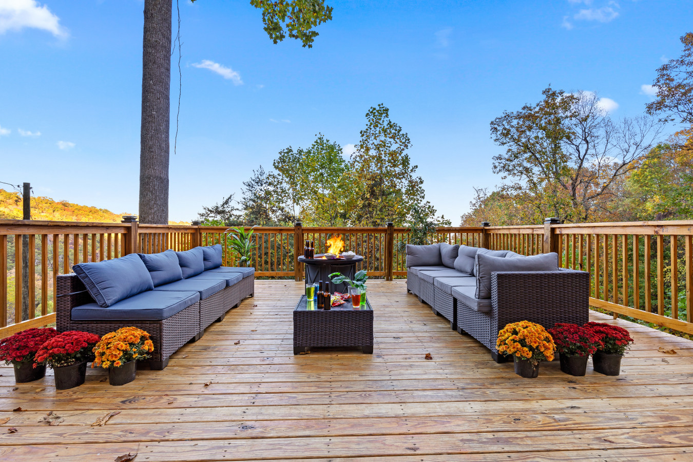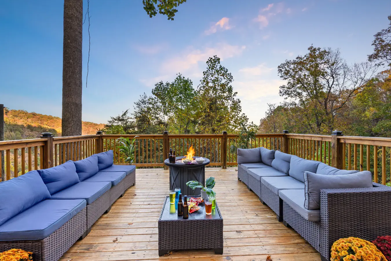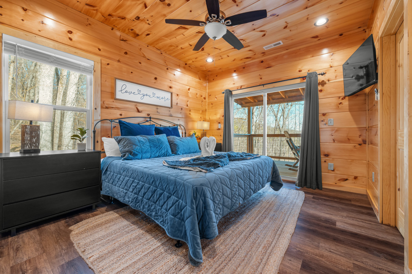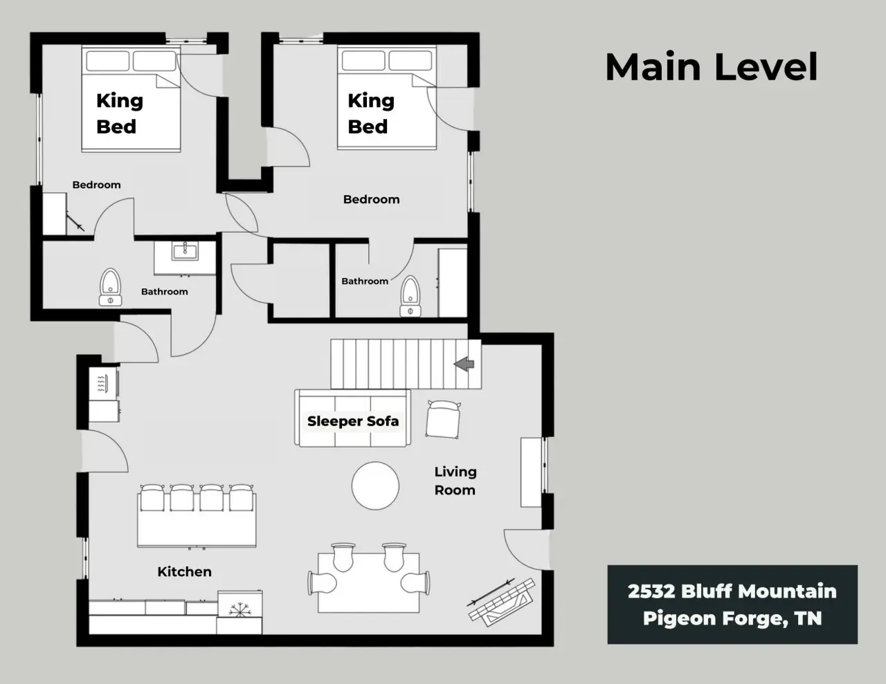 Please note that all Bluff Mountain properties share access to a community deck. This space is not included with your rental for private events like dinners, receptions, or celebrations, but it may be reserved separately upon request for a fee. Unauthorized use of the shared deck for gatherings is strictly prohibited and will result in removal from the property without refund and charge of a $500 fee.