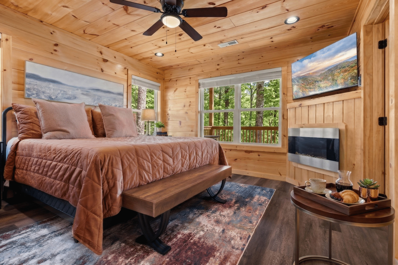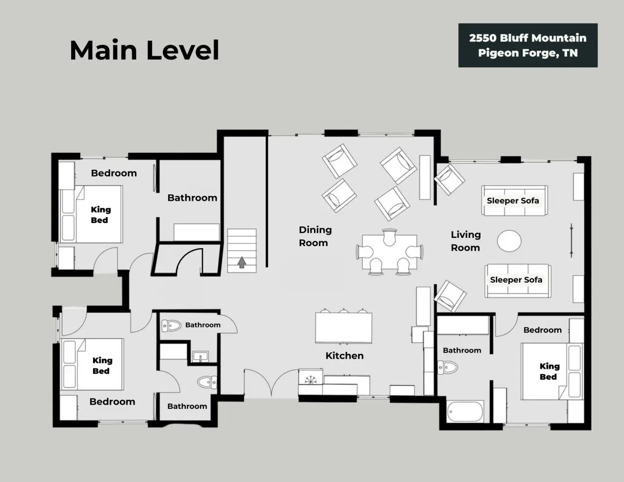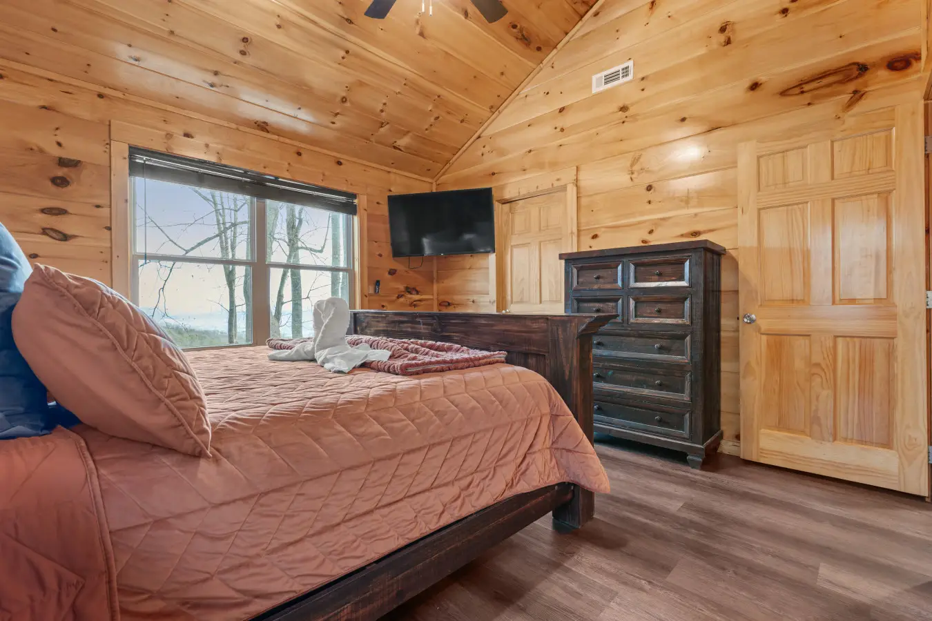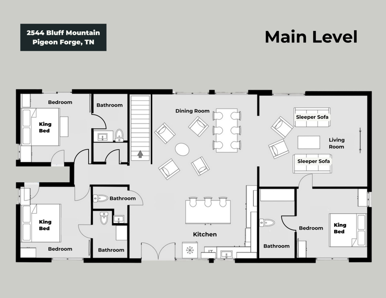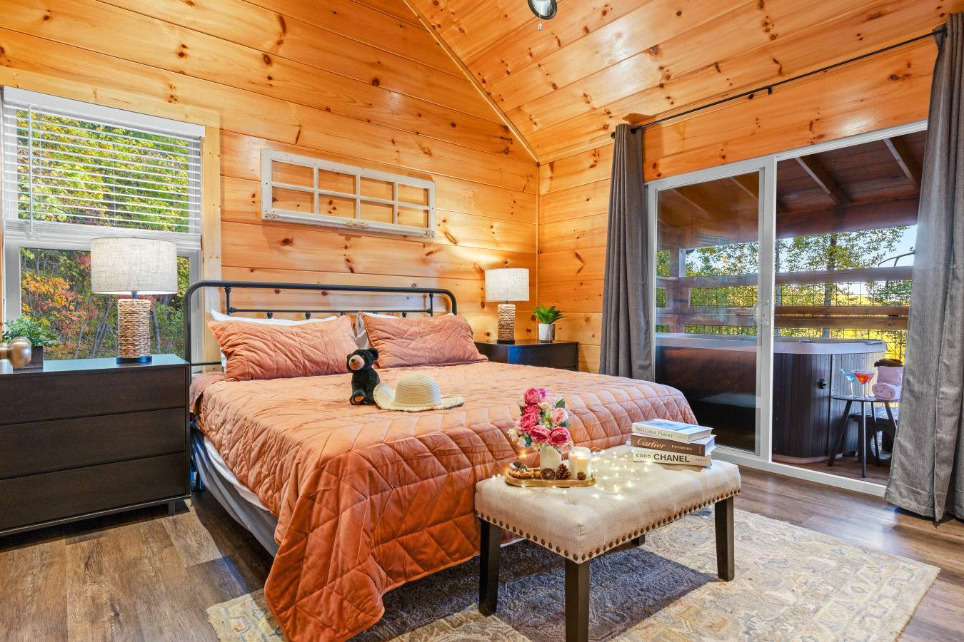 Please note that all Bluff Mountain properties share access to a community deck. This space is not included with your rental for private events like dinners, receptions, or celebrations, but it may be reserved separately upon request for a fee. Unauthorized use of the shared deck for gatherings is strictly prohibited and will result in removal from the property without refund and charge of a $500 fee.