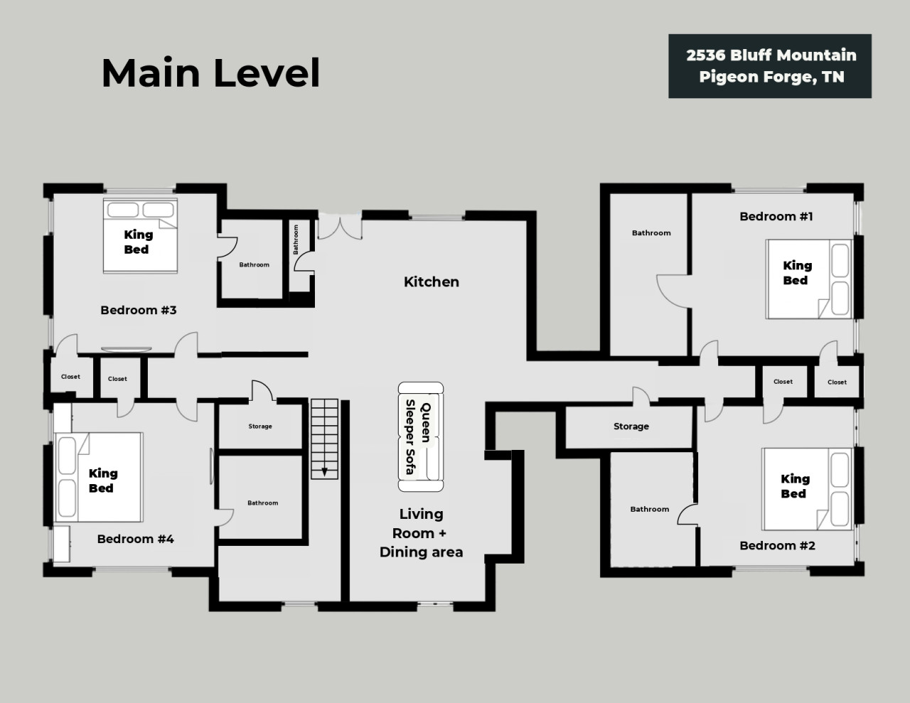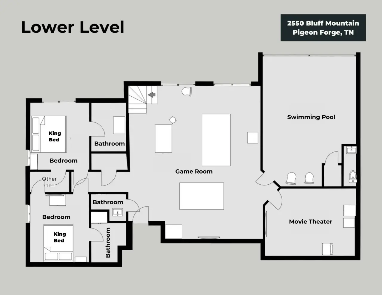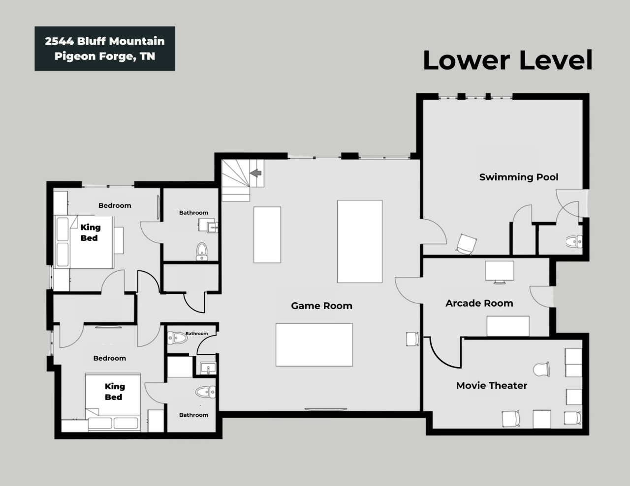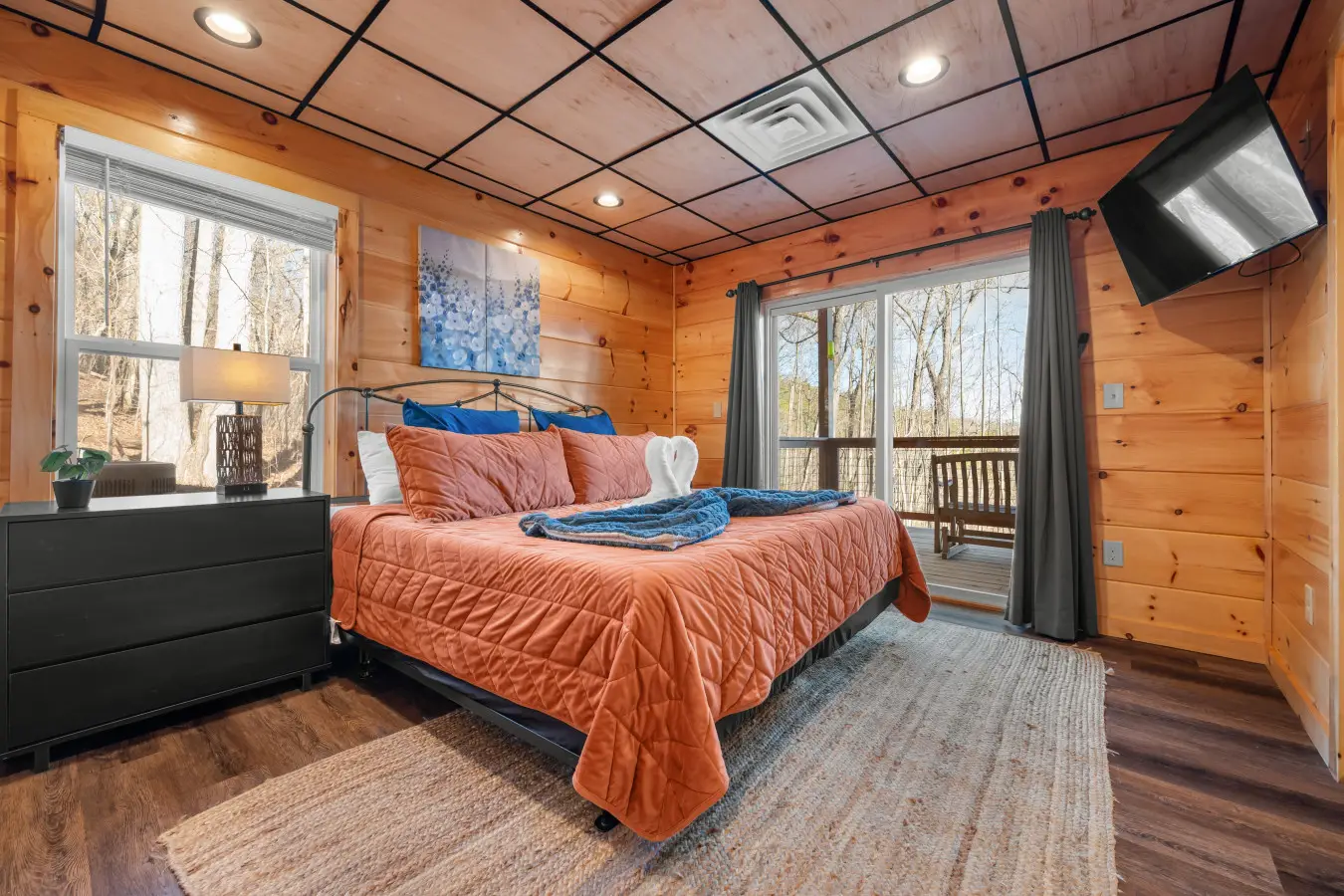 Please note that all Bluff Mountain properties share access to a community deck. This space is not included with your rental for private events like dinners, receptions, or celebrations, but it may be reserved separately upon request for a fee. Unauthorized use of the shared deck for gatherings is strictly prohibited and will result in removal from the property without refund and charge of a $500 fee.