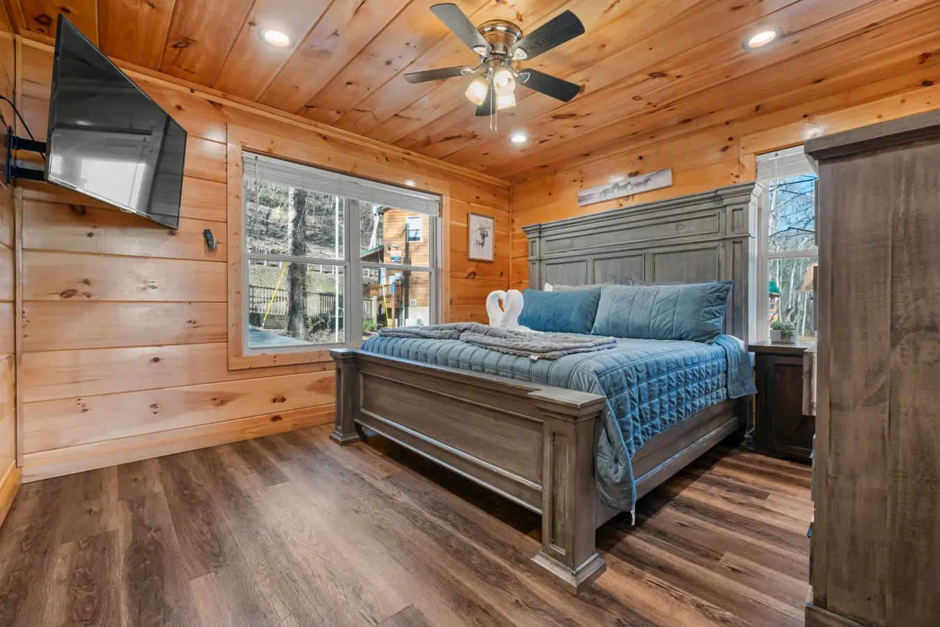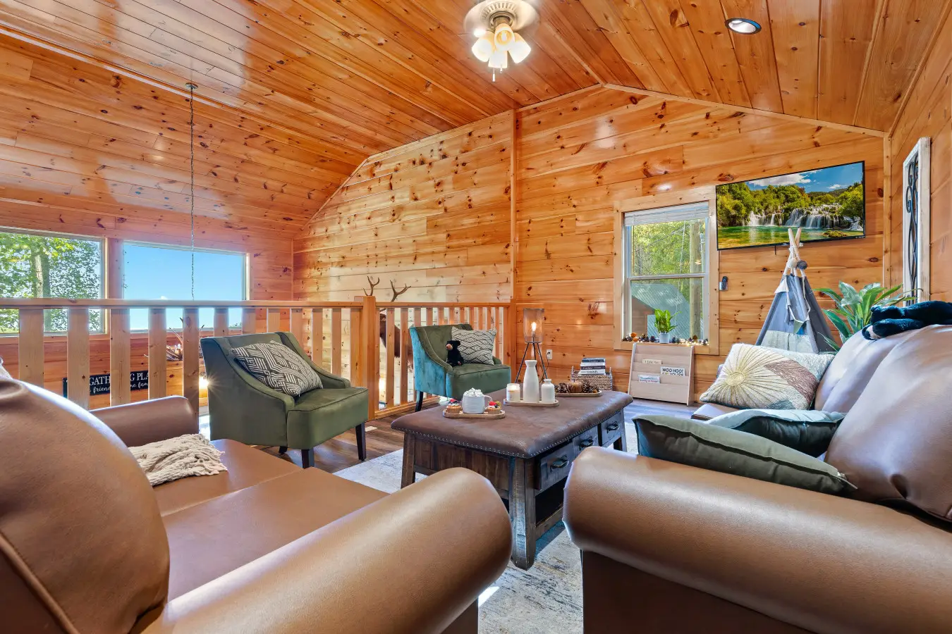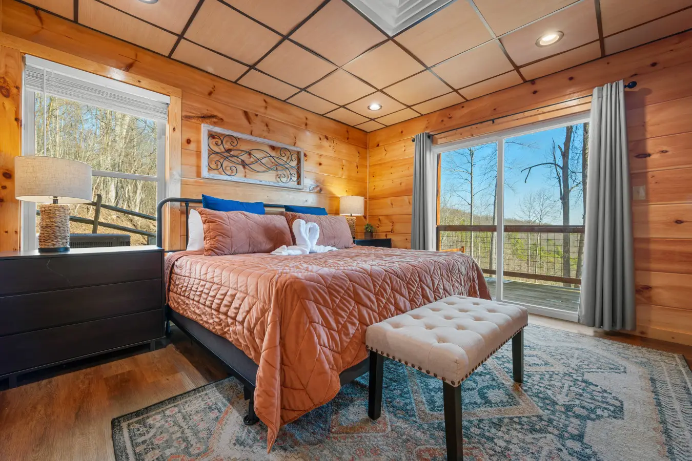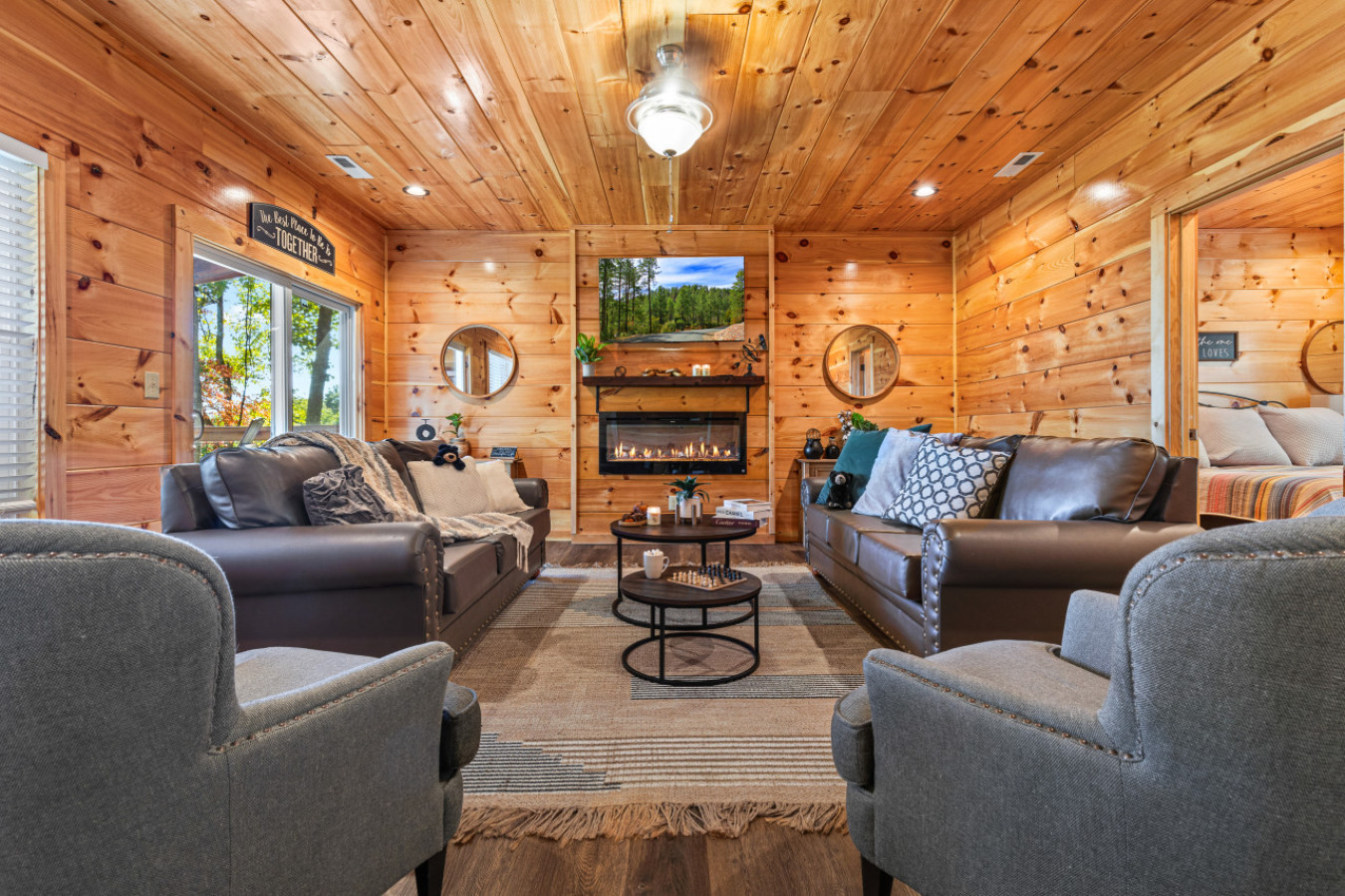 Please note that all Bluff Mountain properties share access to a community deck. This space is not included with your rental for private events like dinners, receptions, or celebrations, but it may be reserved separately upon request for a fee. Unauthorized use of the shared deck for gatherings is strictly prohibited and will result in removal from the property without refund and charge of a $500 fee.