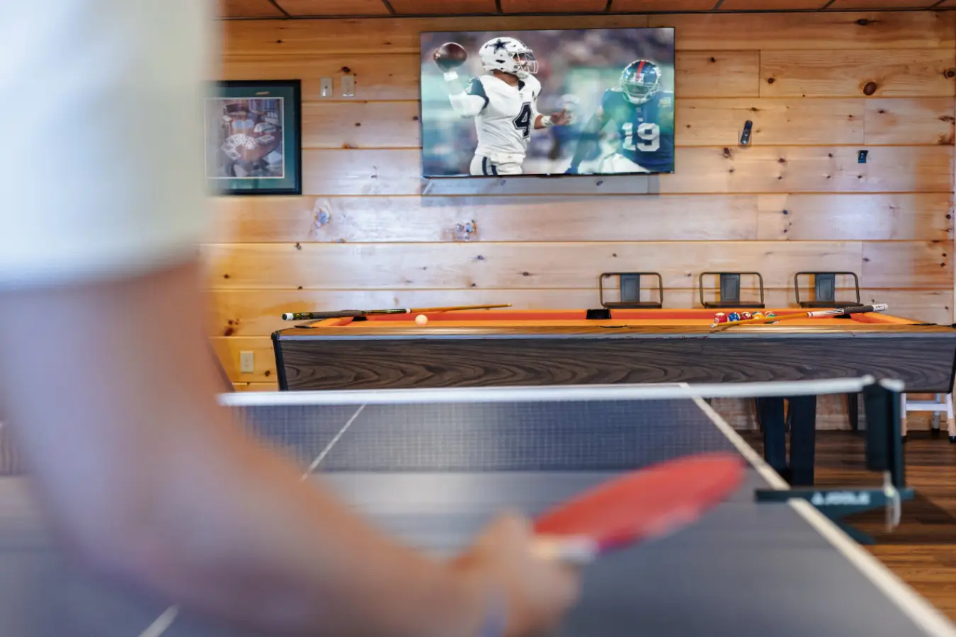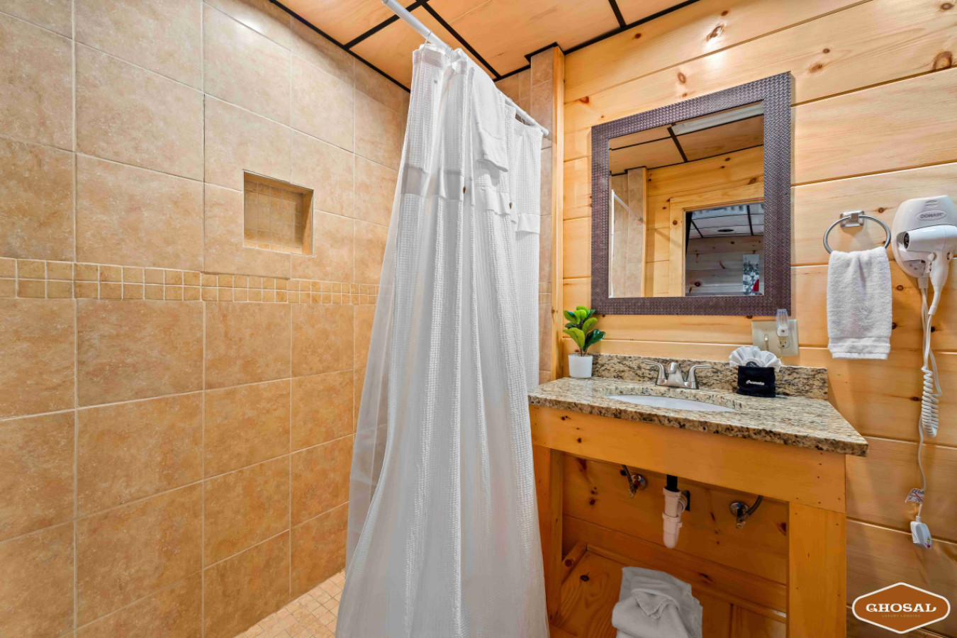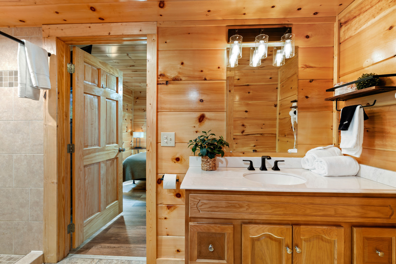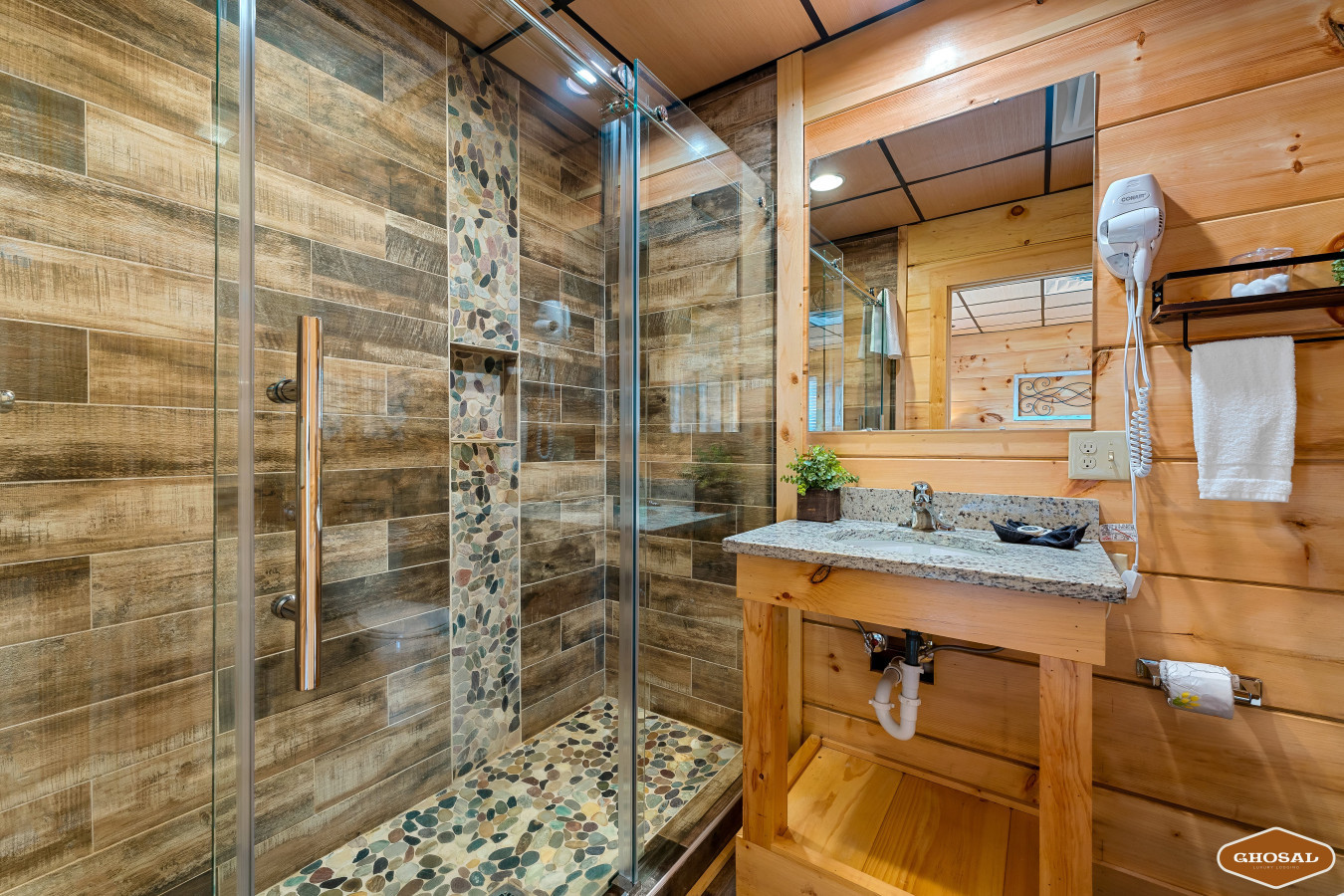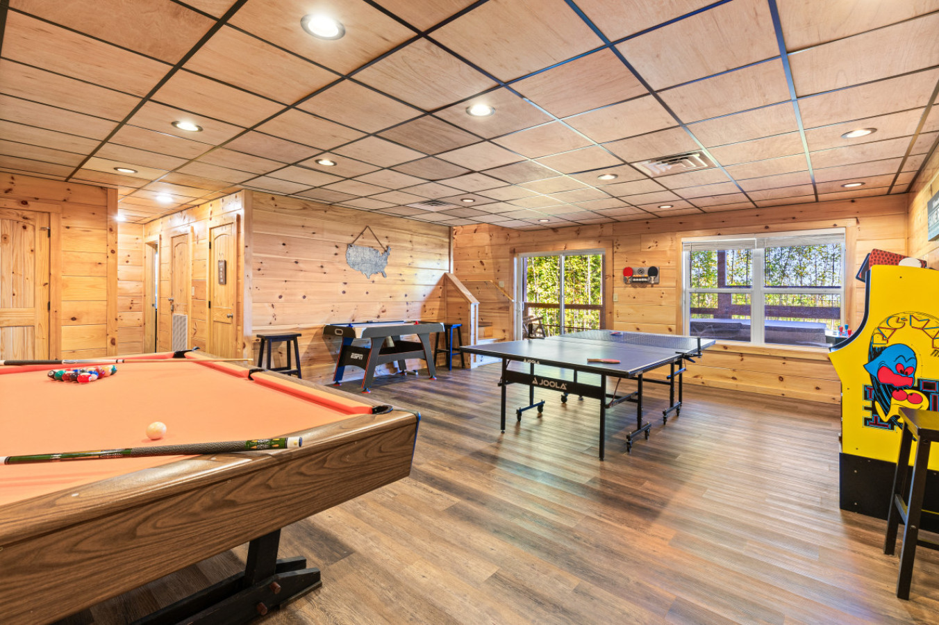 Our cabin features a private indoor pool that is heated for your enjoyment. The pool’s temperature is carefully maintained between 82 and 84 degrees Fahrenheit, ensuring a comfortable swimming experience throughout your stay.