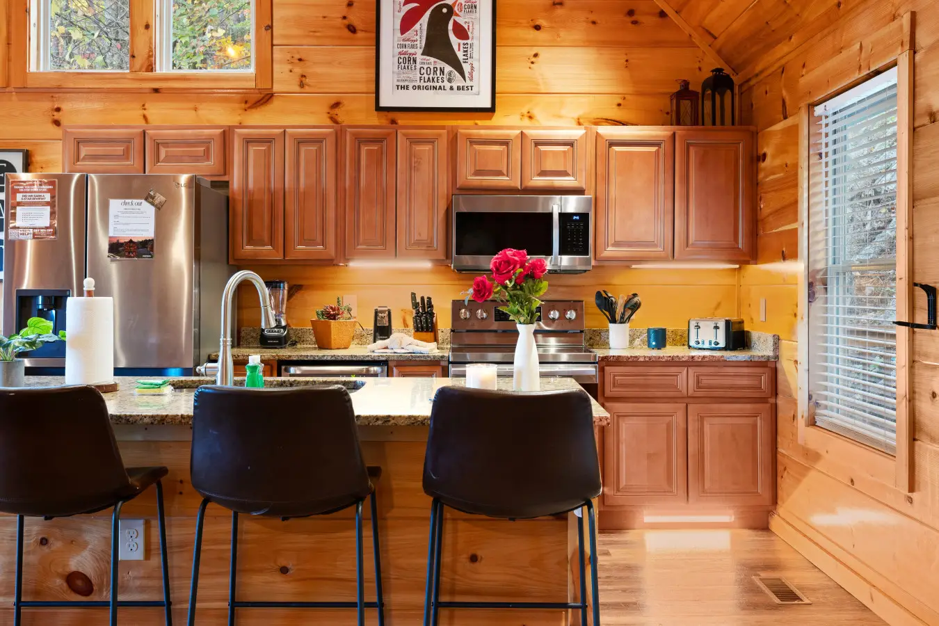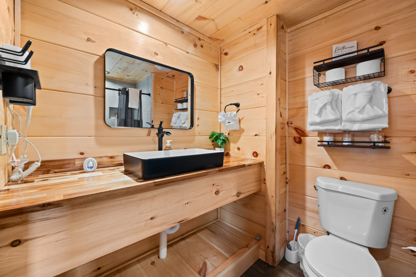 – Please take the trash out to the bear-proof bins outside. If you have any extra trash, kindly place it inside the cabin near the front door, and our cleaning team will remove it after your checkout