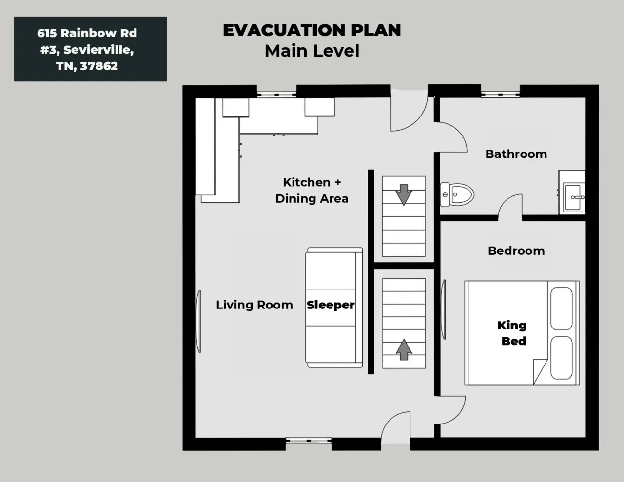 Cabin 1: Main Level Floor Plan.