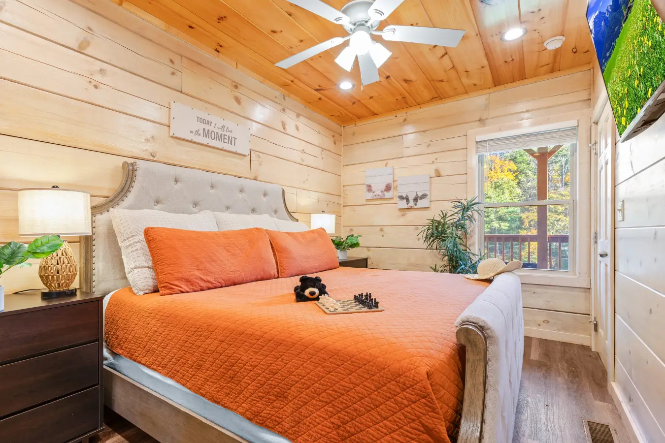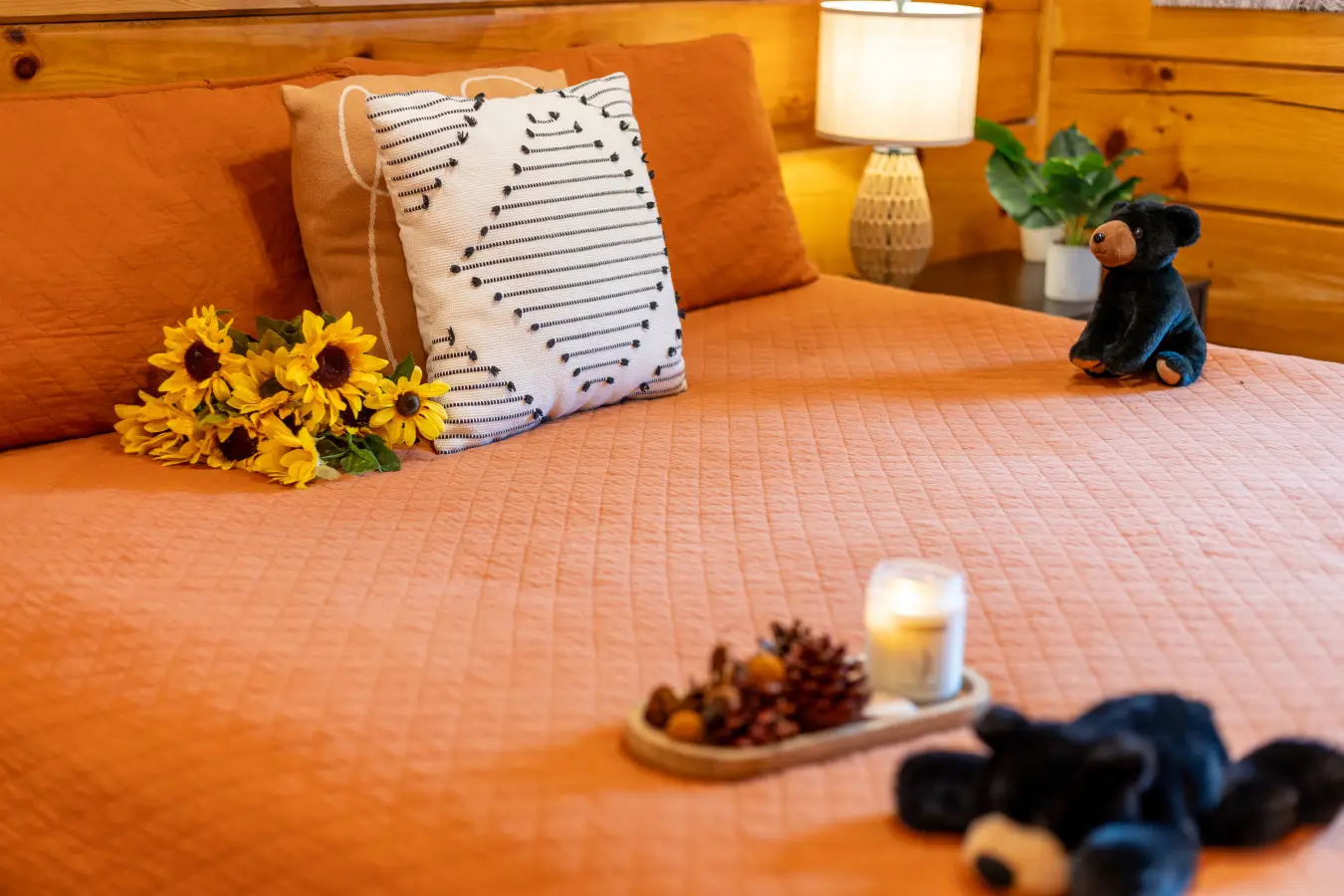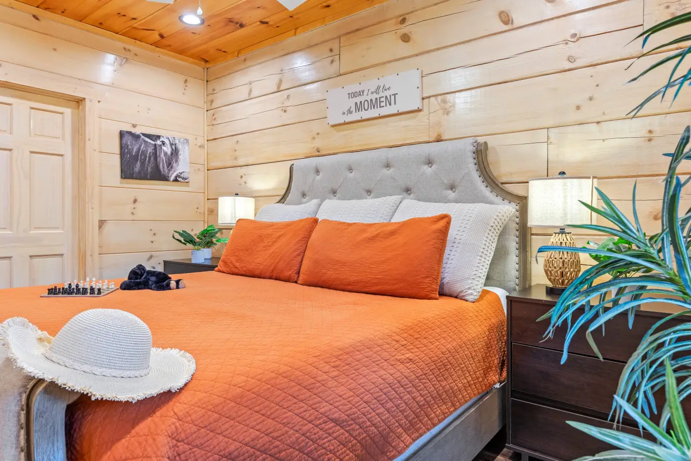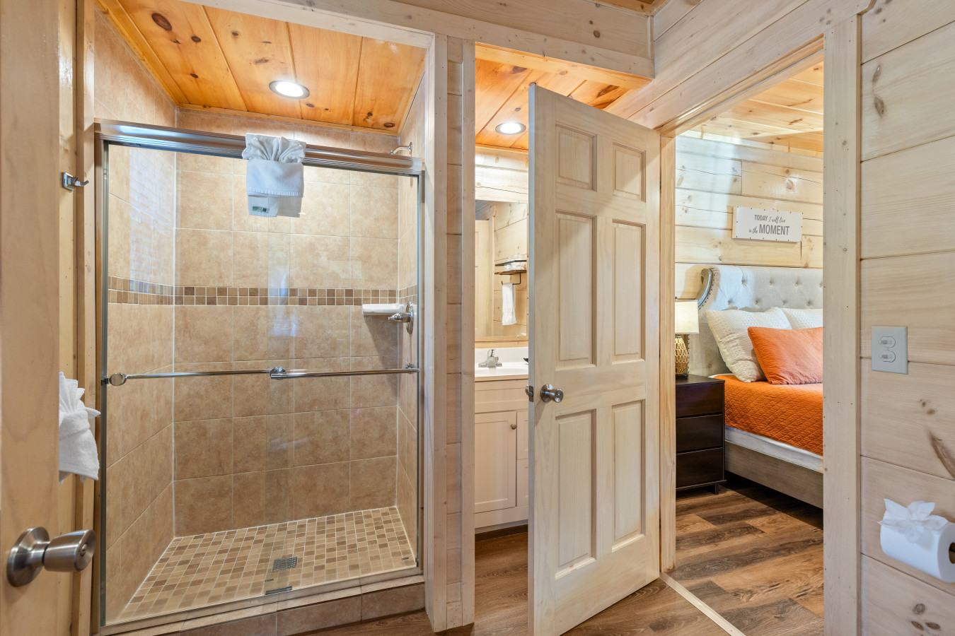 Unwind in these cozy bedrooms — these cabins are designed for comfort and restful nights.