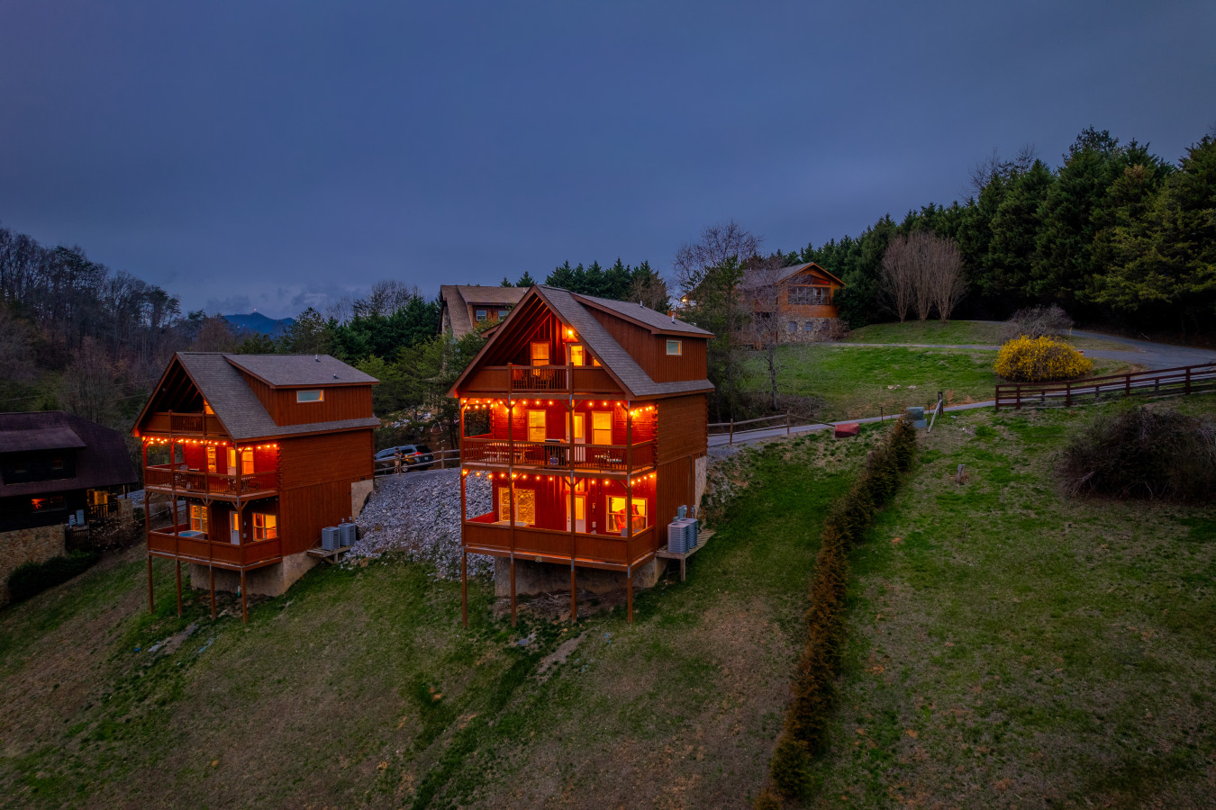 Welcome to The Rainbow Pair — two side-by-side cabins just minutes from Gatlinburg.