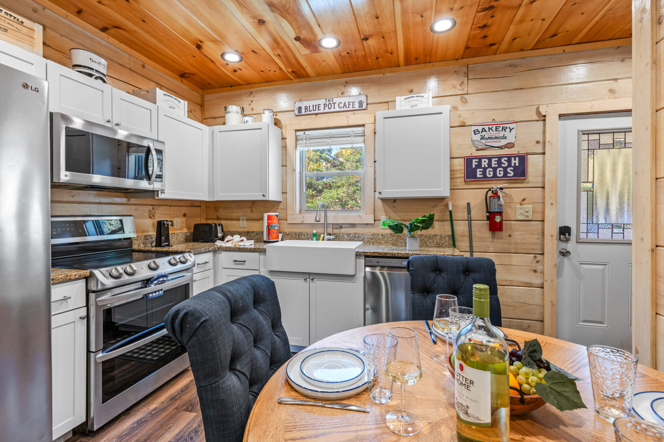 – Please take the trash out to the bear-proof bins outside. If you have any extra trash, kindly place it inside the cabin near the front door, and our cleaning team will remove it after your checkout.
