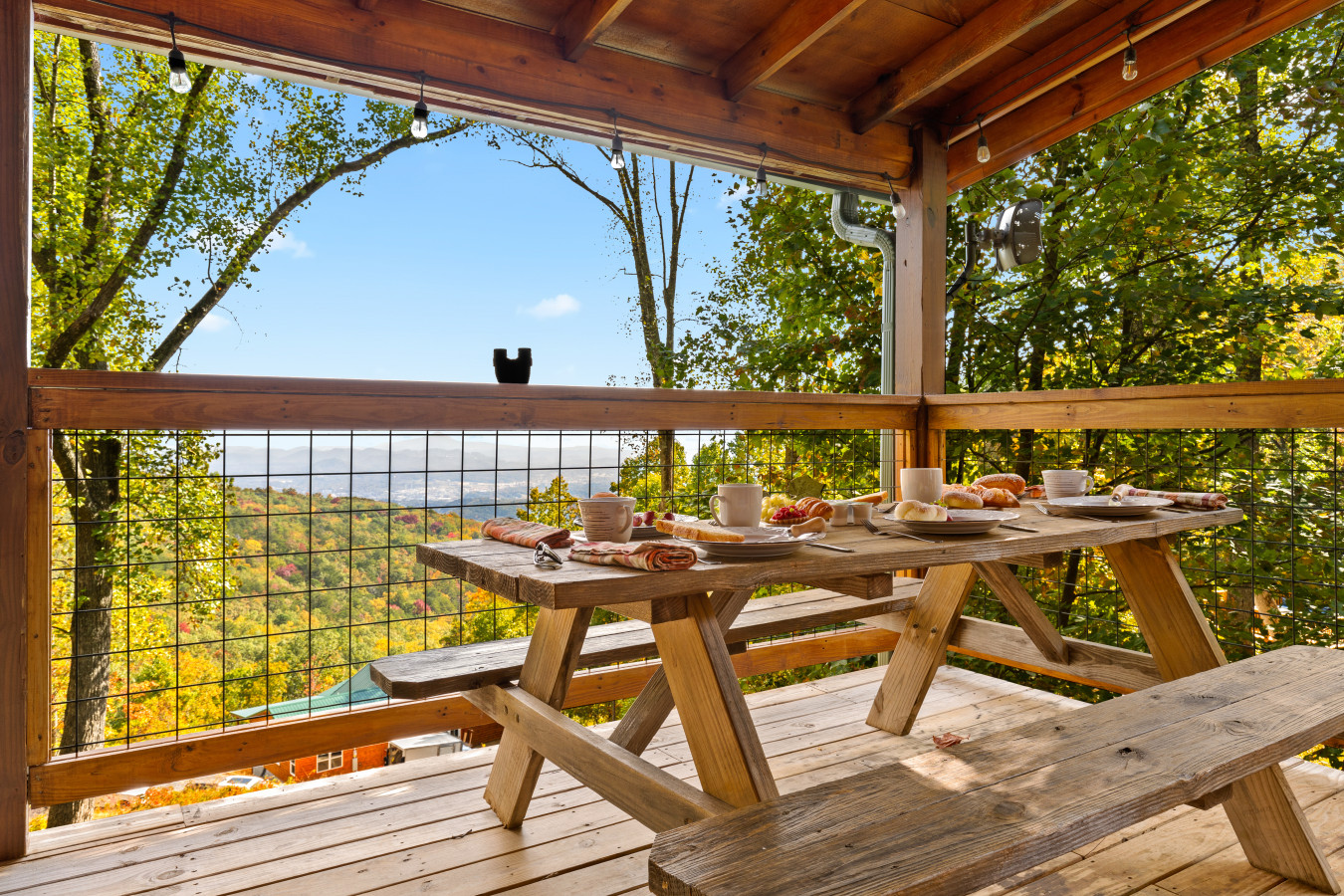 Transition effortlessly from the cozy sofa and crackling fireplace, to the spacious terrace offering the most breathtaking views of the Smoky Mountains.
