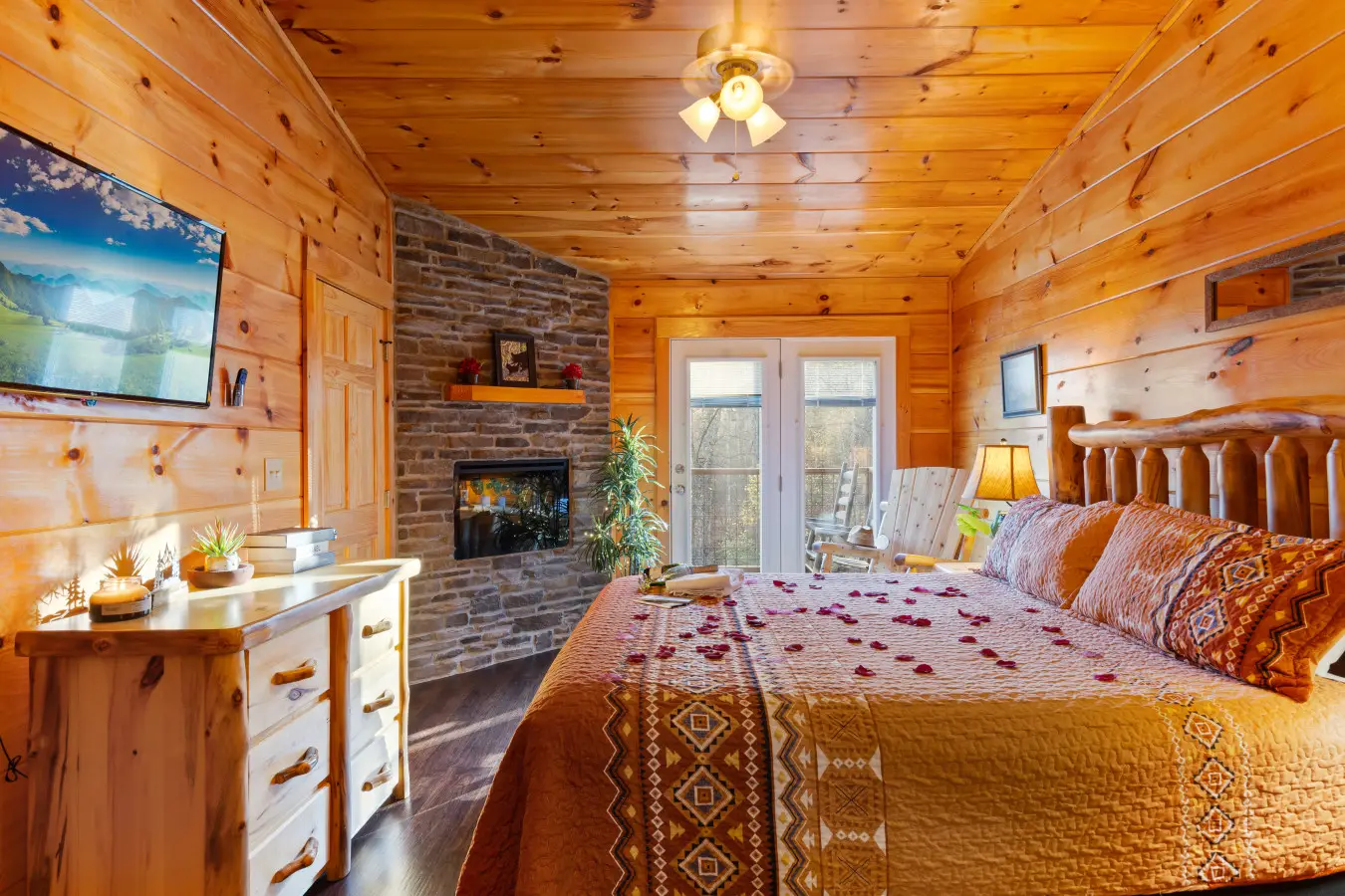 Bedroom 2: Romantic moments await in this cozy cabin setting.